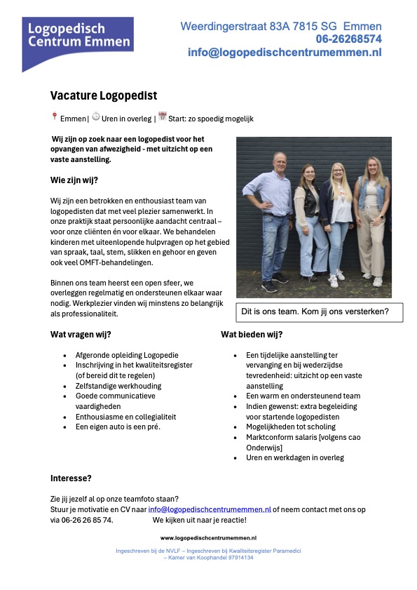 Telefoonnummer: 0591-642553 - info@logopedischcentrumemmen.nl